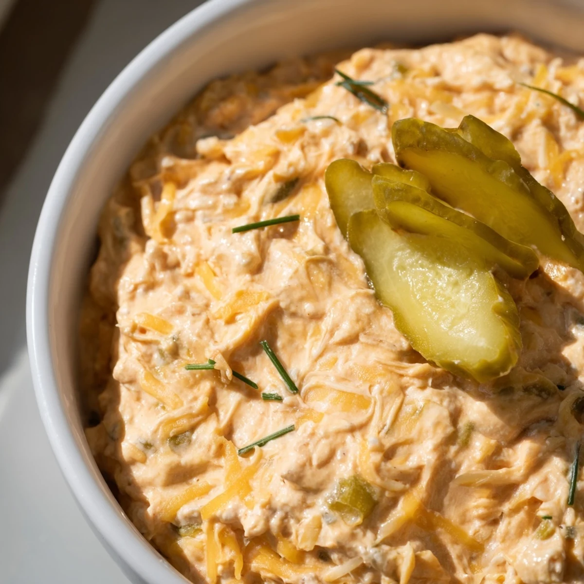 The first time I brought this dip to a friend's house, it was actually kind of a happy accident. I'd meant to make buffalo chicken dip but realized halfway through that I was out of chicken entirely. Standing there with a jar of pickles in one hand and buffalo sauce in the other, I figured why not give it a shot? Now people actually request this over the original version at every gathering.