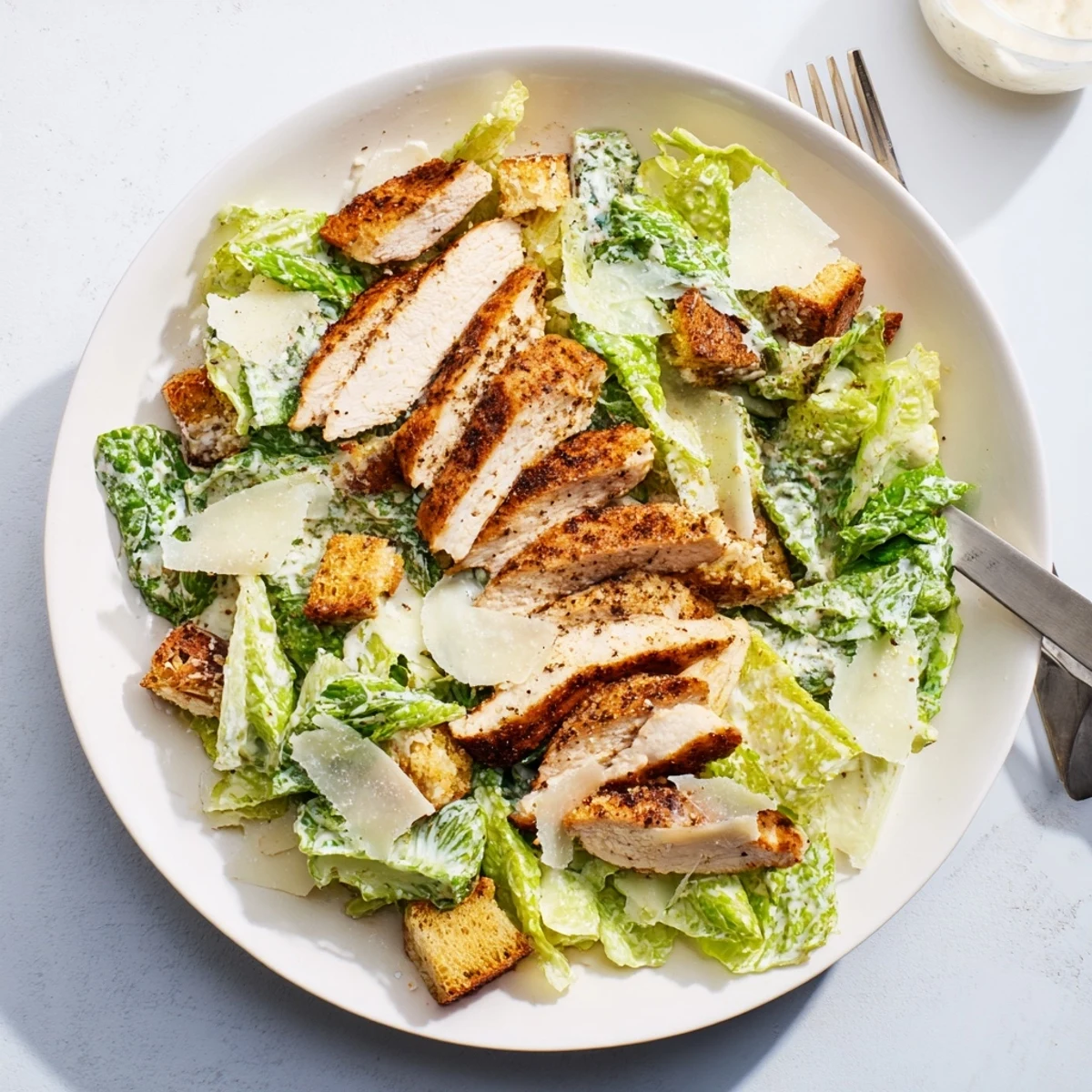 Ready in just 35 minutes, this salad delivers restaurant-quality results at home. The juicy seasoned chicken pairs beautifully with the tangy, garlicky dressing, while crunchy croutons add satisfying texture in every bite.