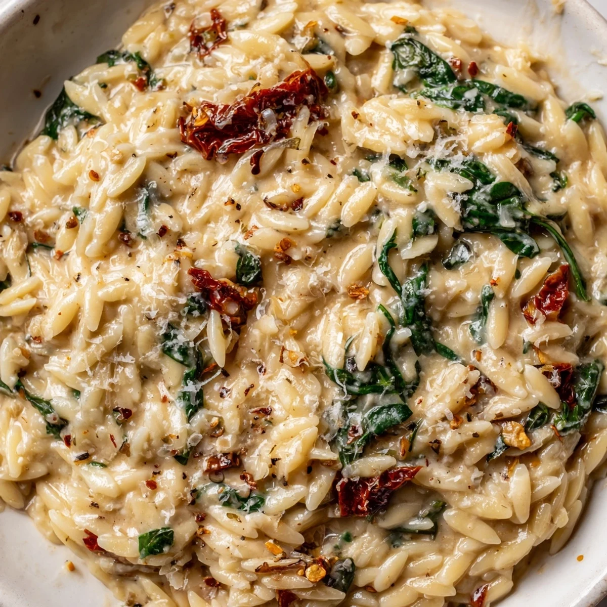 The first time I made this orzo, my kitchen smelled like an Italian farmhouse kitchen. Sun-dried tomatoes were sizzling away in butter when my roommate walked in, sniffing the air dramatically before grabbing a fork. We ate it straight from the skillet, standing over the stove, and finished every last bite.