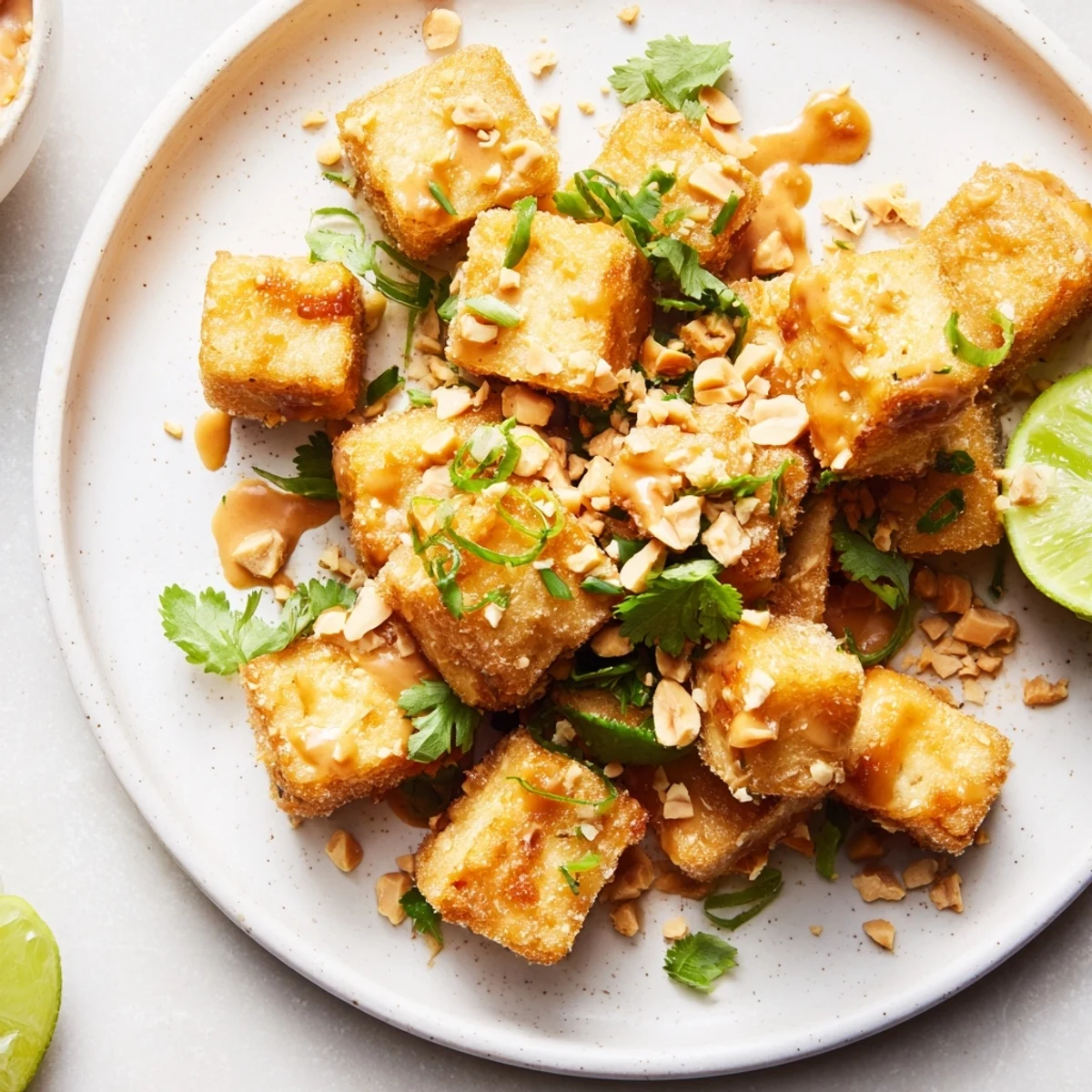 This dish features firm tofu pressed and coated with cornstarch, then baked until golden and crispy. A spicy peanut sauce made from creamy peanut butter, soy sauce, rice vinegar, maple syrup, and chili brings bold flavor. Garnished with spring onions, chopped peanuts, cilantro, and lime wedges, it offers a well-rounded protein-packed option fitting vegetarian and vegan preferences. The straightforward preparation and baking make it approachable for all skill levels.
