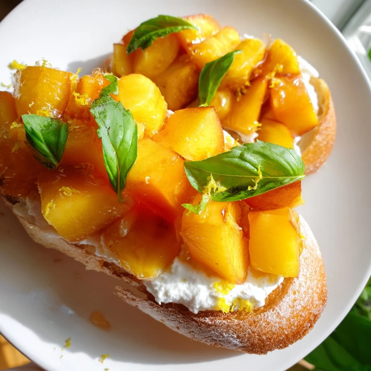 - Spoon the peach mixture evenly over the ricotta, letting some pieces fall naturally for that rustic, gathered look that makes people feel like they are eating something handmade.